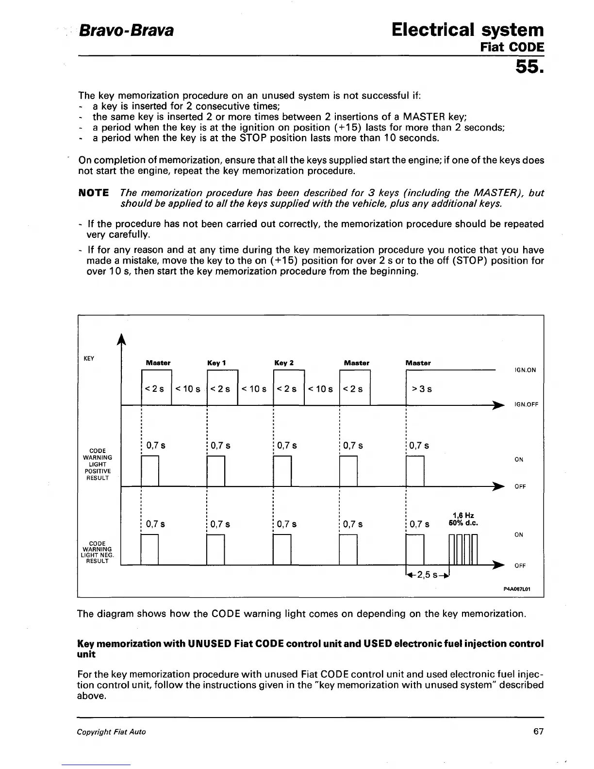 For the key memorization procedure with unused Fiat CODE control unit and used electronic fuel injec-