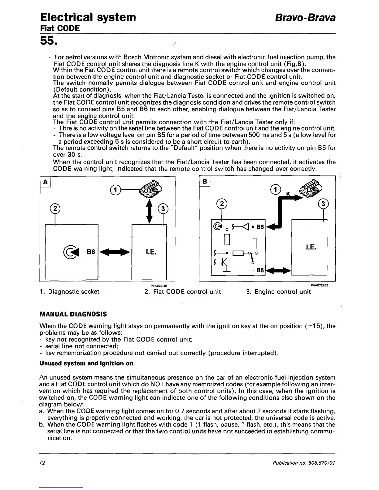 tion between the engine control unit and diagnostic socket or Fiat CODE control unit.