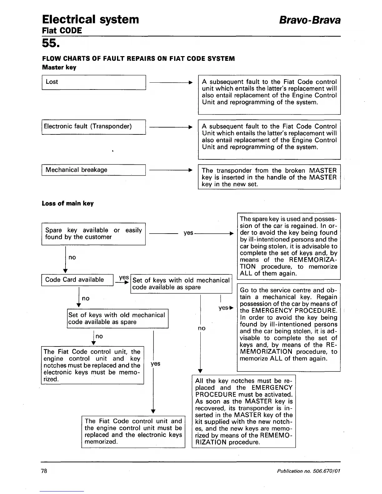 FLOW CHARTS OF FAULT REPAIRS ON FIAT CODE SYSTEM
