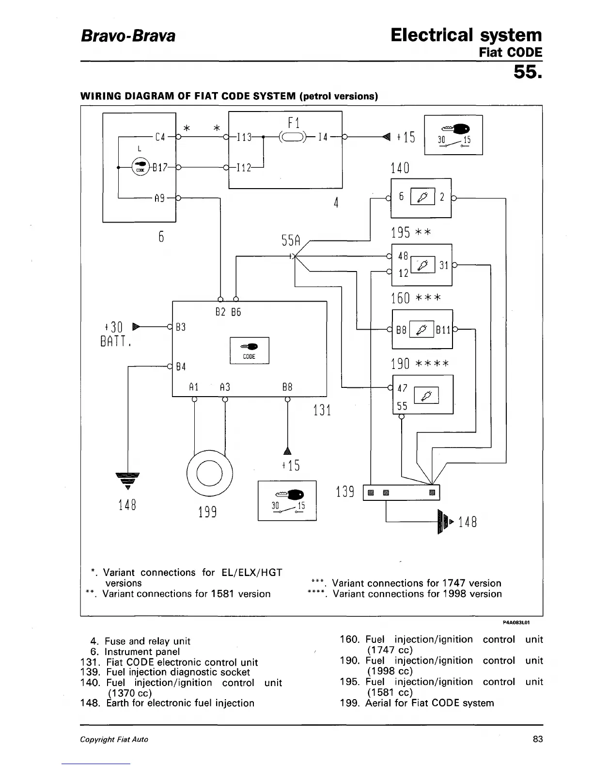 WIRING DIAGRAM OF FIAT CODE SYSTEM (petrol versions)