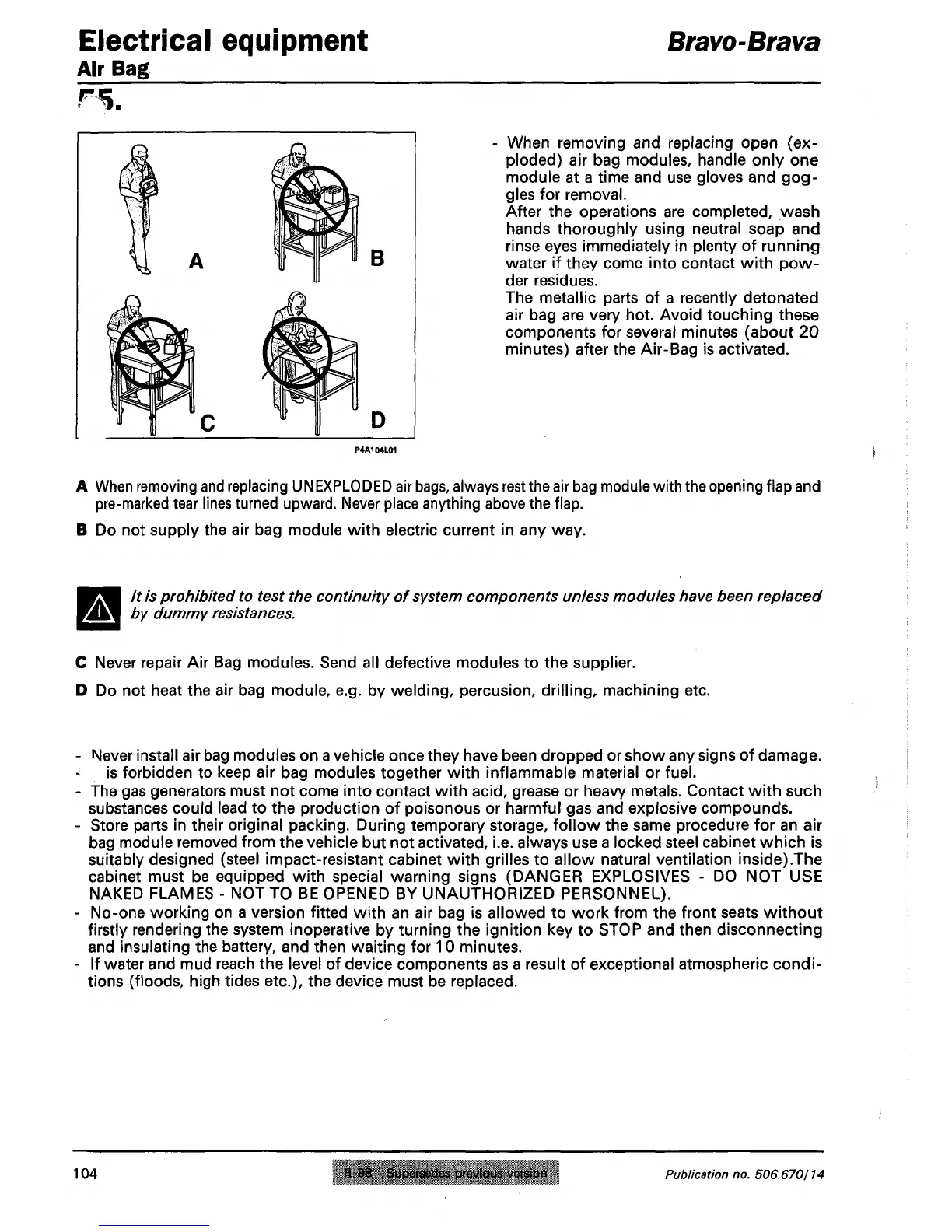D Do not heat the air bag module, e.g. by welding, percusion, drilling, machining etc.