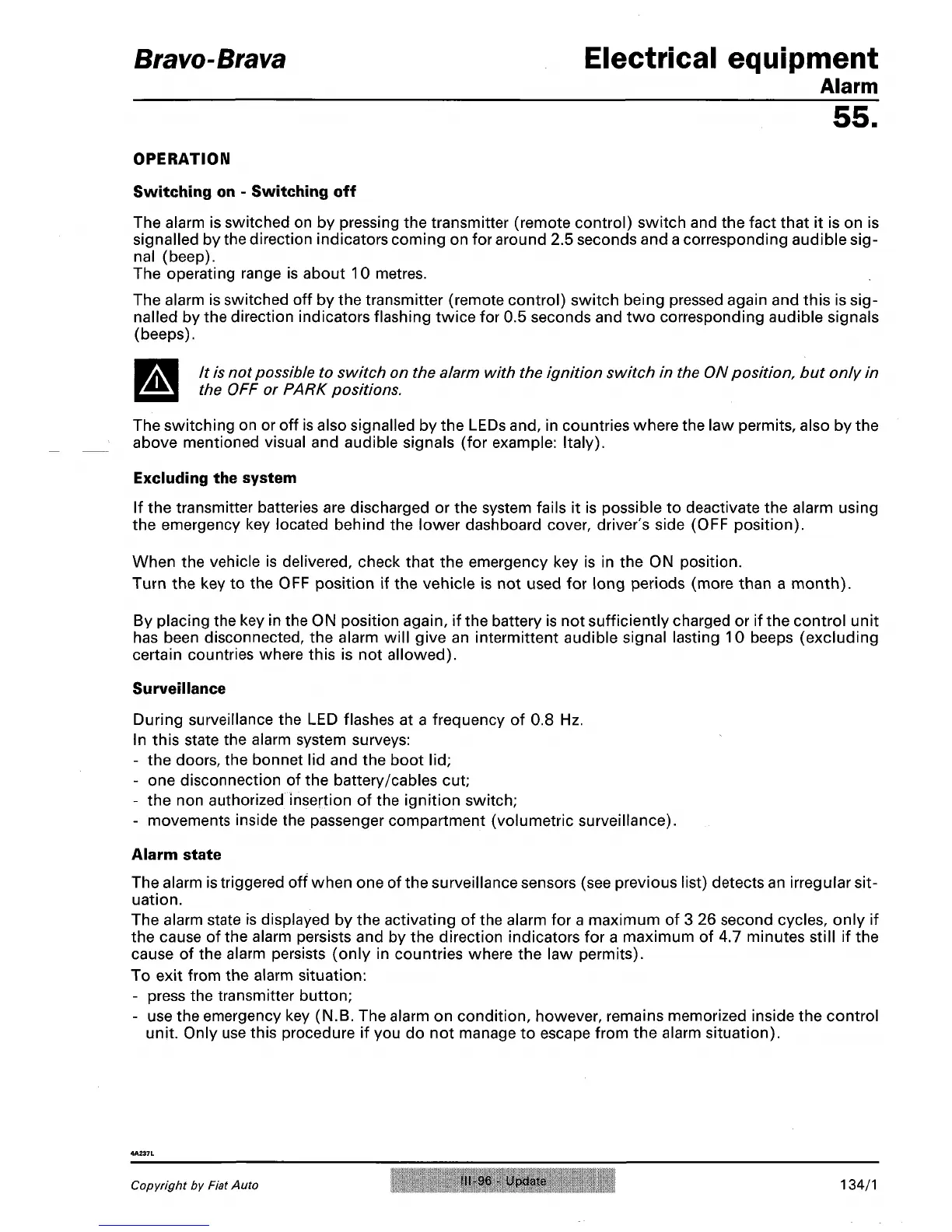 it is not possible to switch on the alarm with the ignition switch in the ON position, but only in