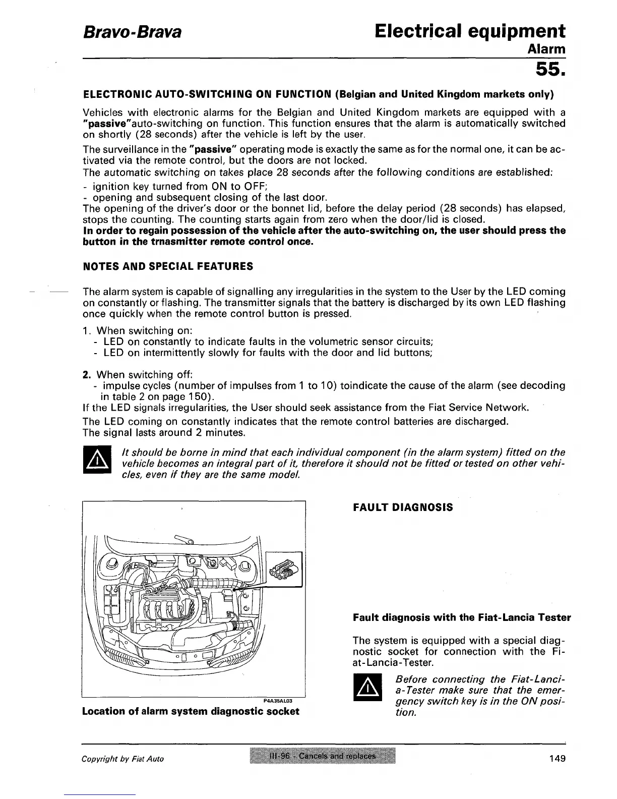 Vehicles with electronic alarms for the Belgian and United Kingdom markets are equipped with a