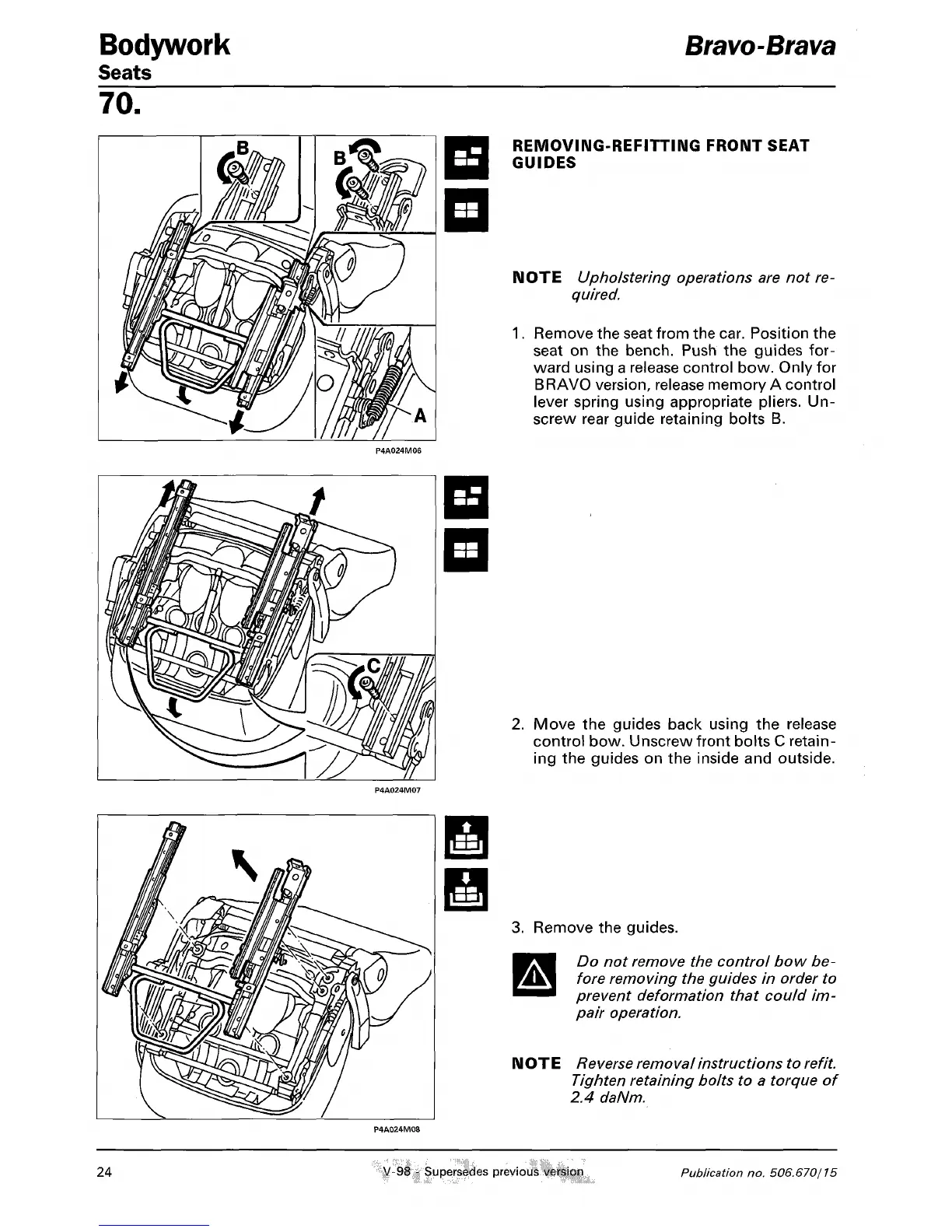screw rear guide retaining bolts B.