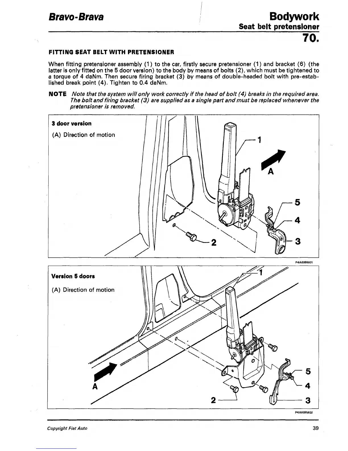 latter is only fitted on the 5 door version) to the body by means of bolts (2), which must be tightened to