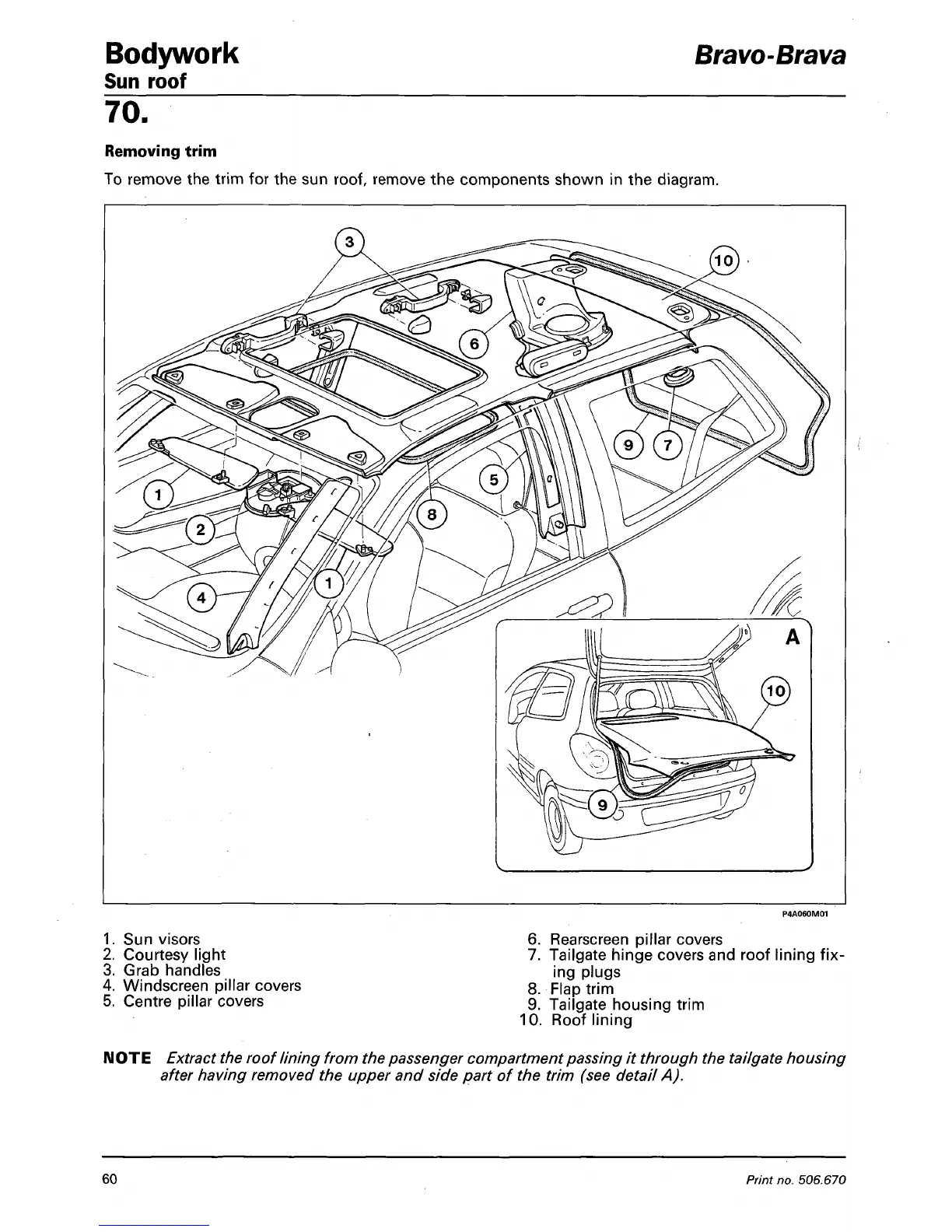 To remove the trim for the sun roof, remove the components shown in the diagram.