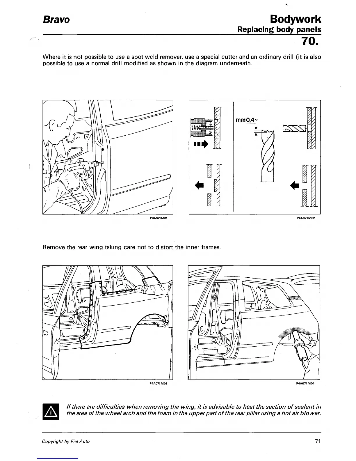 Where it is not possible to use a spot weld remover, use a special cutter and an ordinary drill (it is also