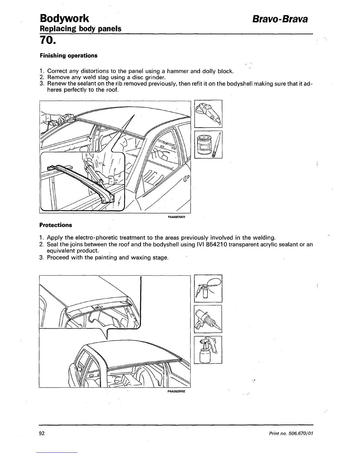 Seal the joins between the roof and the bodyshell using IVI 854210 transparent acrylic sealant or an