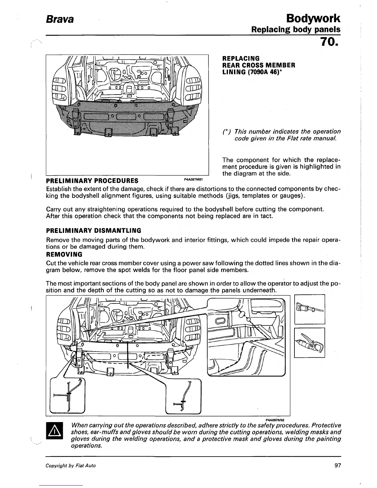 Remove the moving parts of the bodywork and interior fittings, which could impede the repair opera-