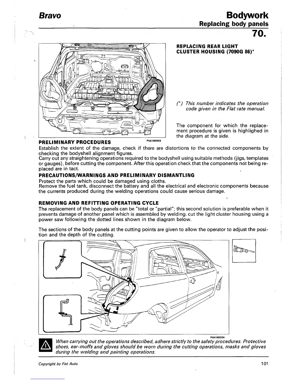 prevents damage of another panel which is assembled by welding, cut the light cluster housing using a