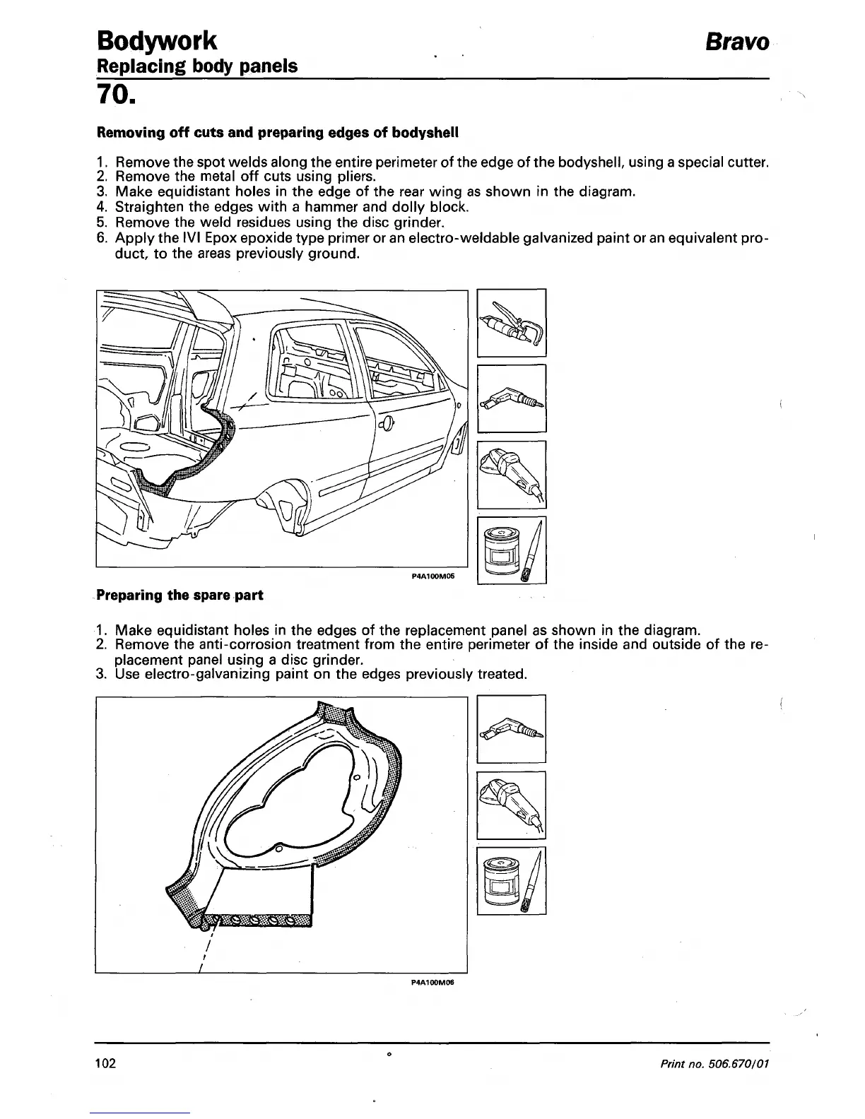 Remove the spot welds along the entire perimeter of the edge of the bodyshell, using a special cutter.