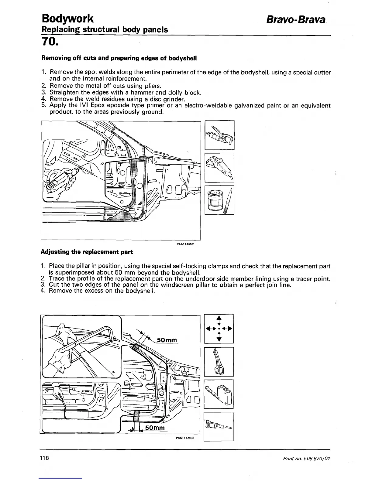 Remove the spot welds along the entire perimeter of the edge of the bodyshell, using a special cutter