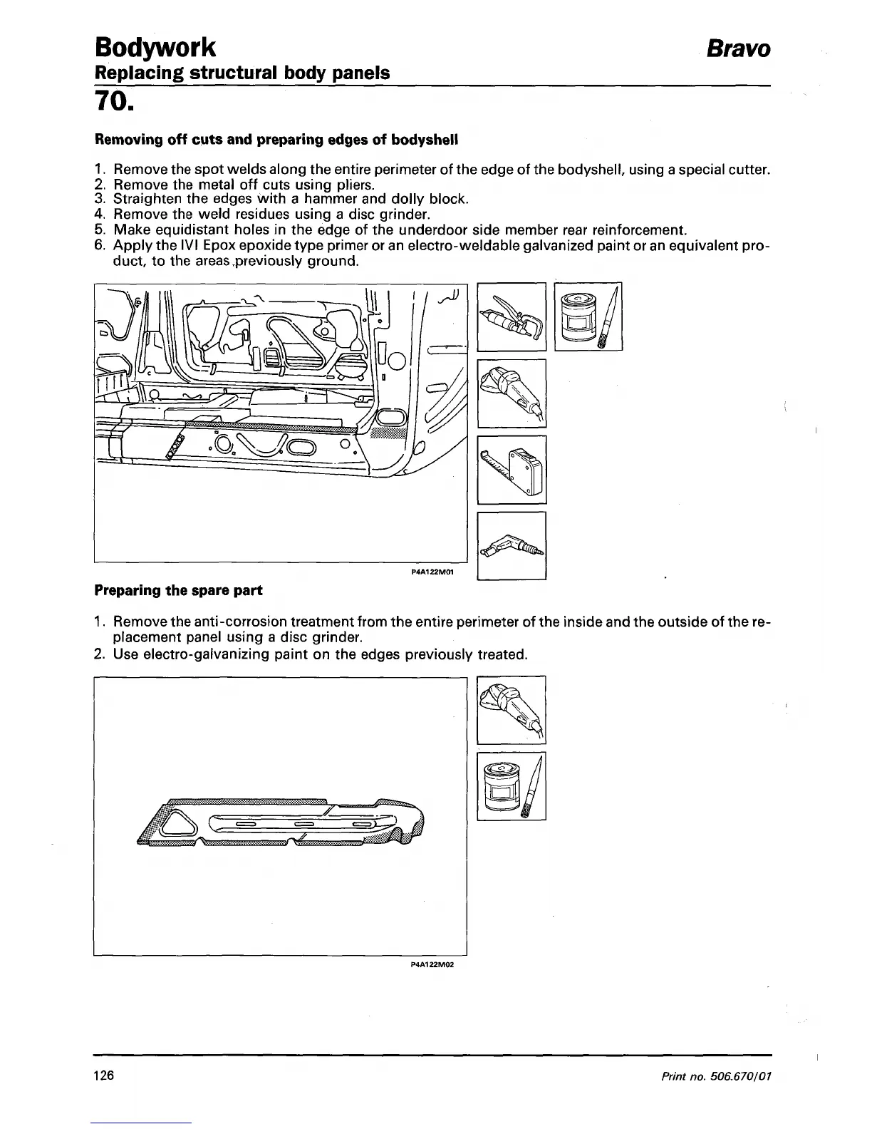 Remove the spot welds along the entire perimeter of the edge of the bodyshell, using a special cutter,
