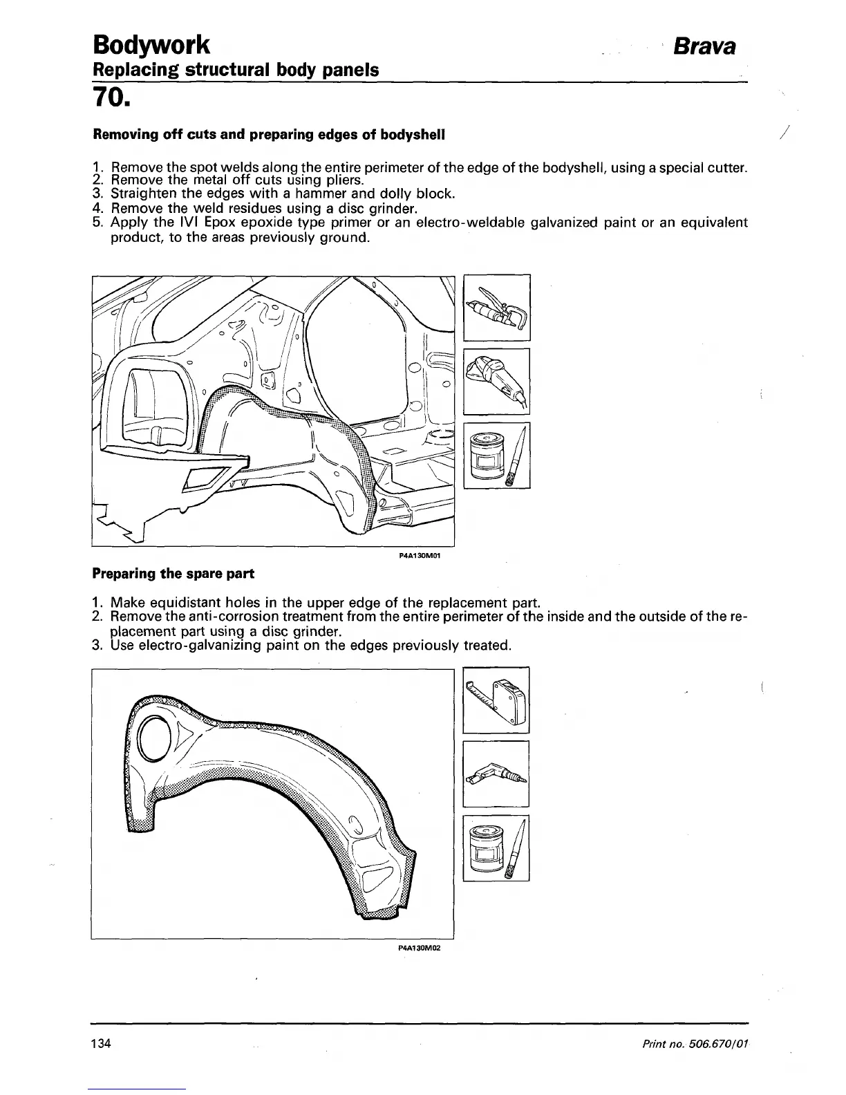 Remove the spot welds along the entire perimeter of the edge of the bodyshell, using a special cutter.