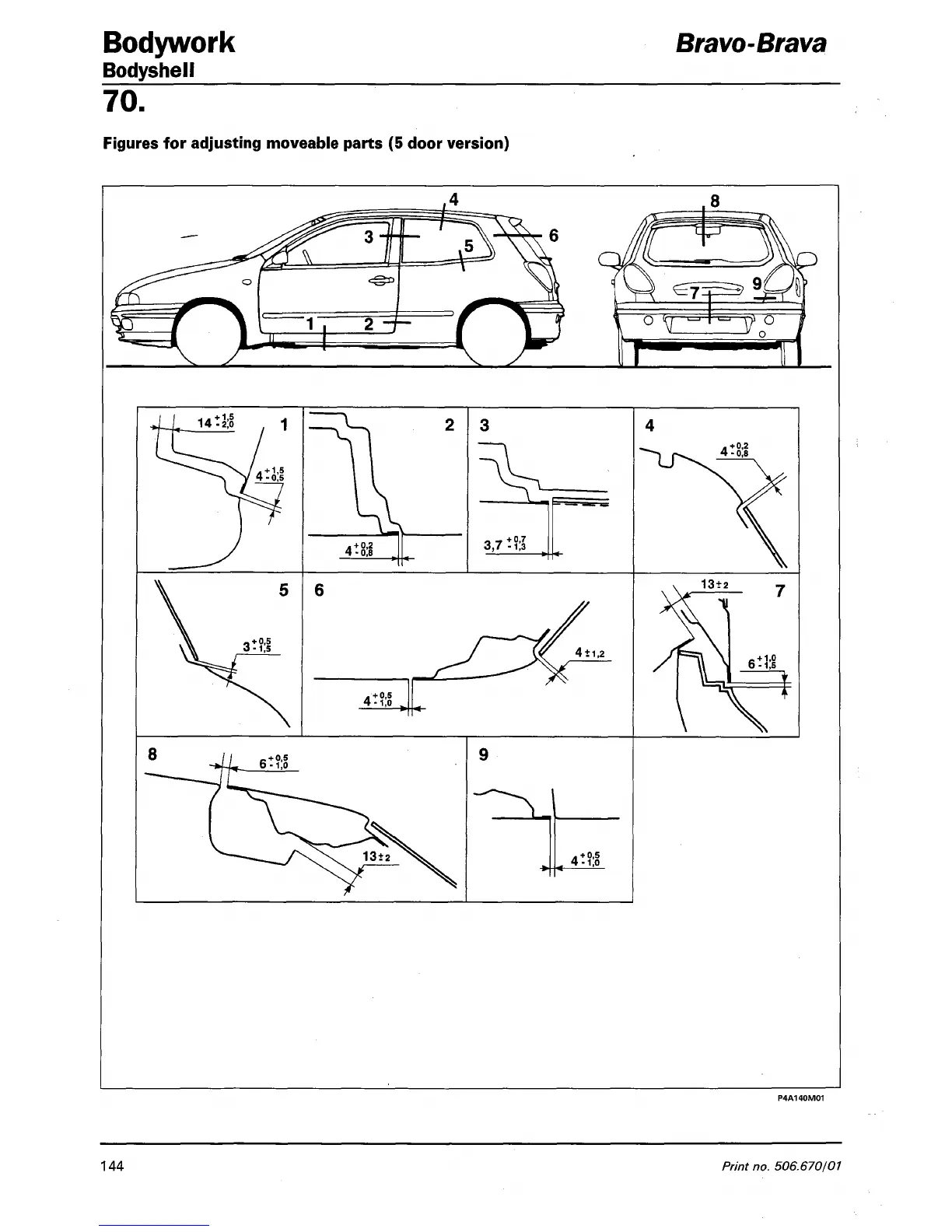 Figures for adjusting moveable parts (5 door version)