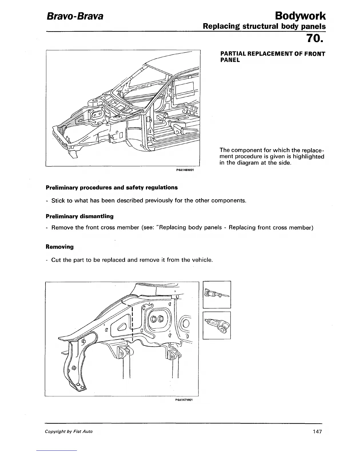 - Remove the front cross member (see: "Replacing body panels - Replacing front cross member)