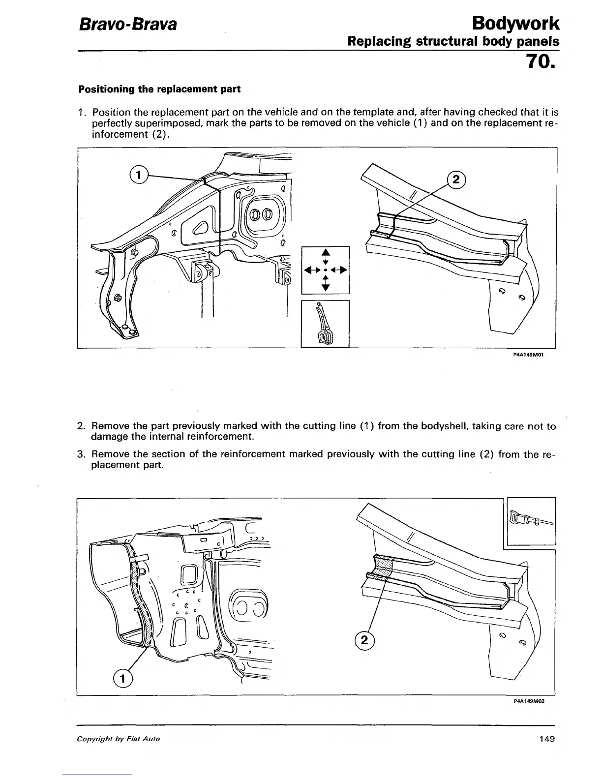 Remove the part previously marked with the cutting line (1) from the bodyshell, taking care not to
