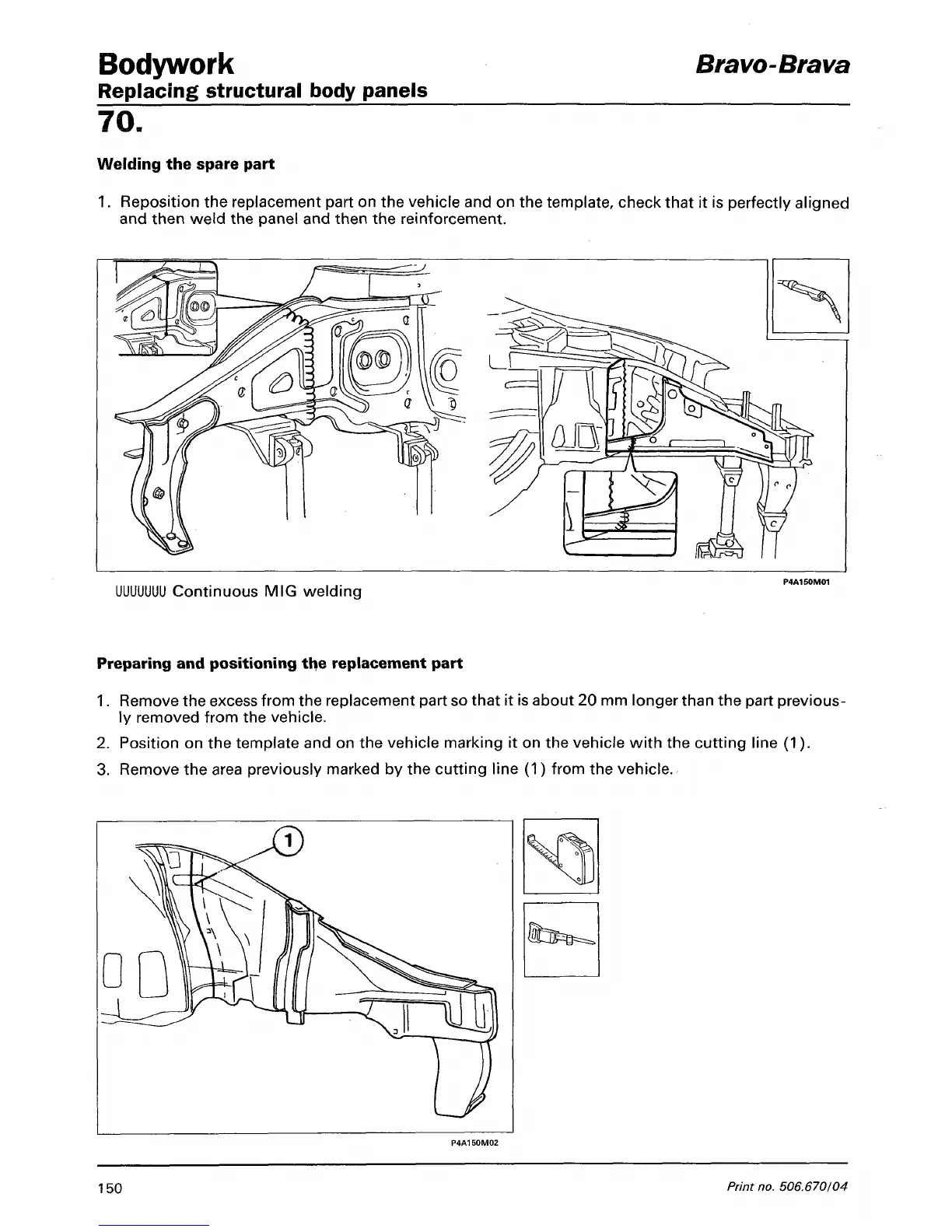 Remove the excess from the replacement part so that it is about 20 mm longer than the part previous-
