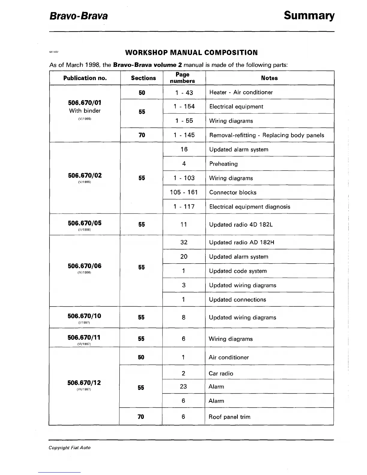 As of March 1998, the Bravo-Brava volume 2 manual is made of the following parts: