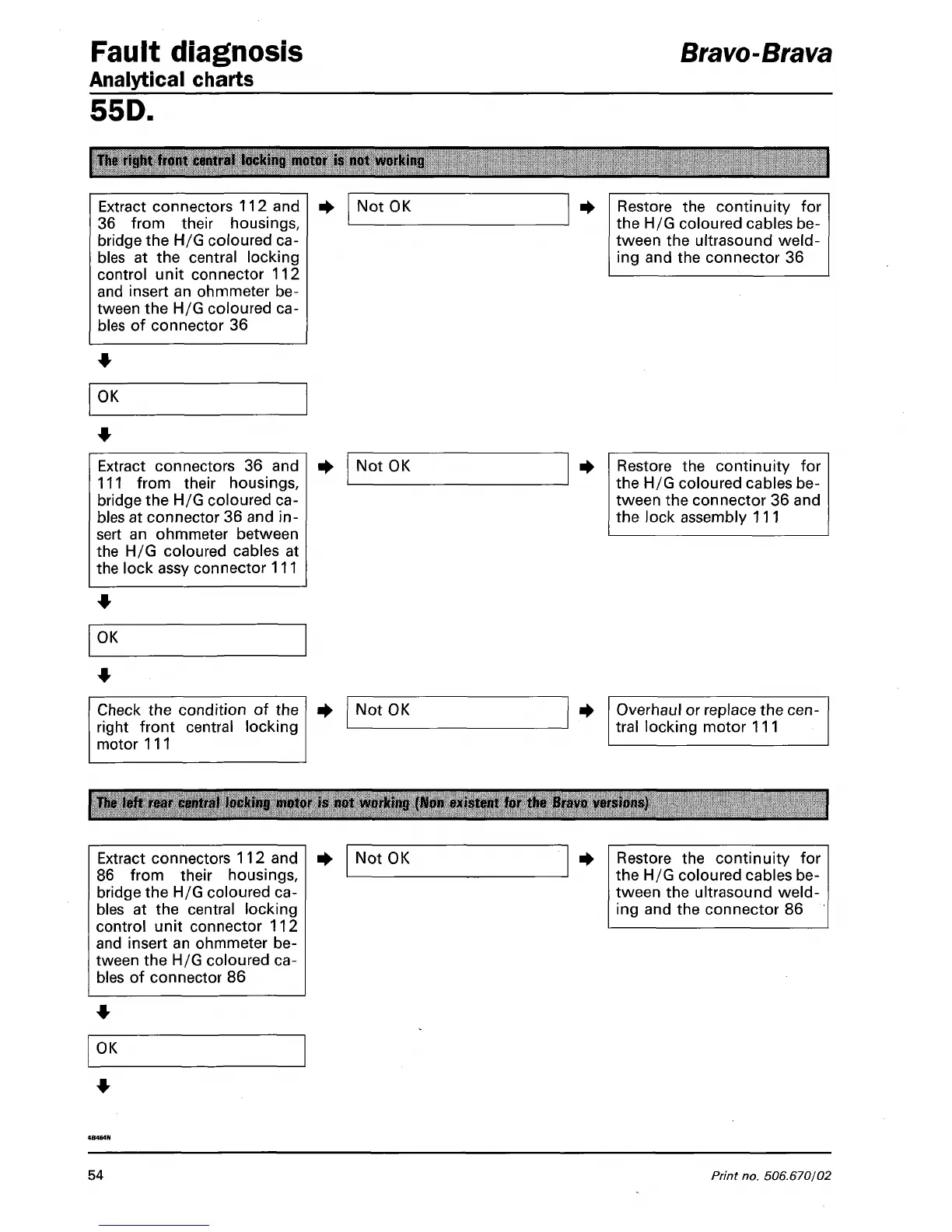The left rear central locking motor is not working (Non existent for the Bravo versions)