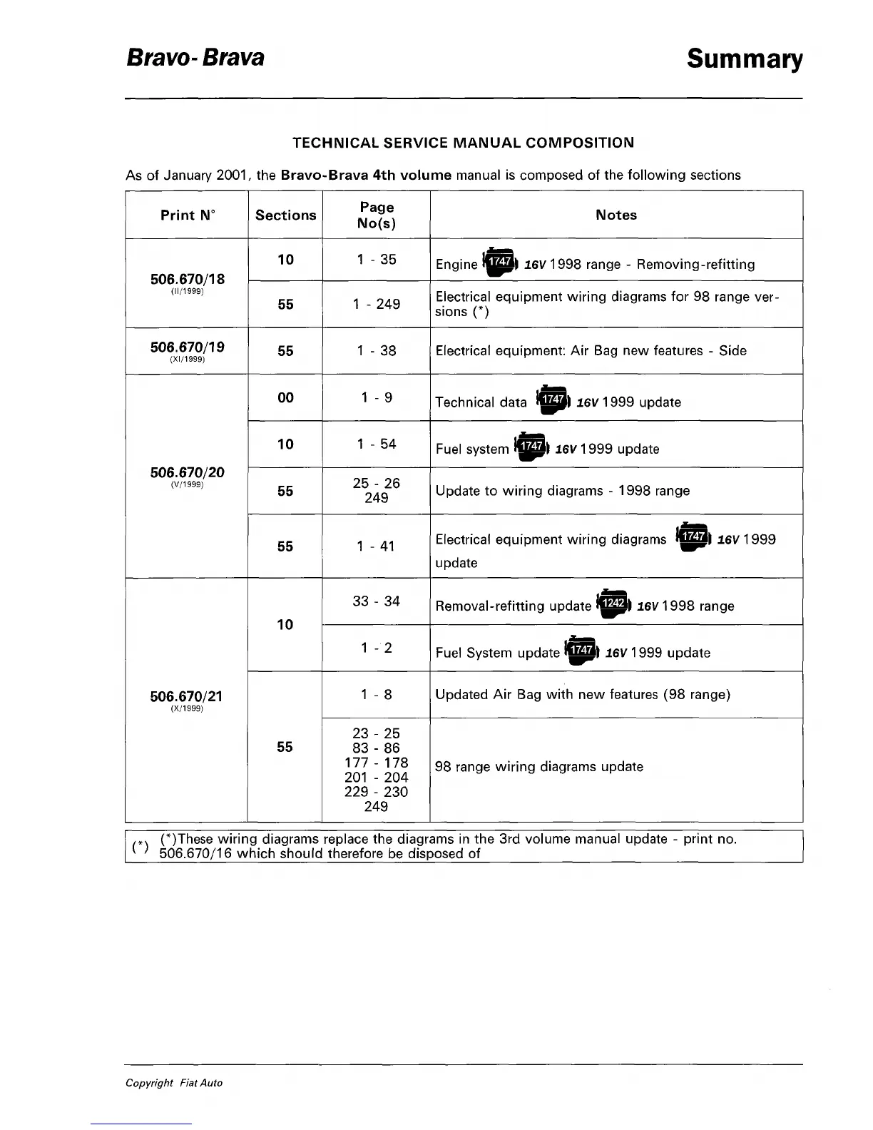 As of January 2001, the Bravo-Brava 4th volume manual is composed of the following sections