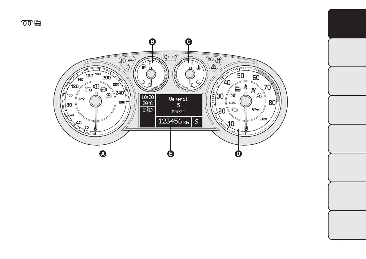 warning light D. Rev counter E. Reconfigurable multifunction display.