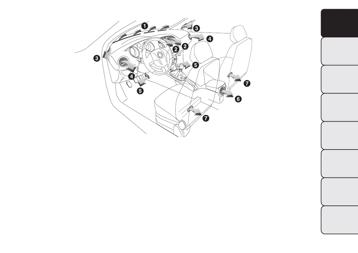 window defrosting or demisting - 4. Adjustable and directable side diffusers - 5. Lower diffusers - 6. Directable and