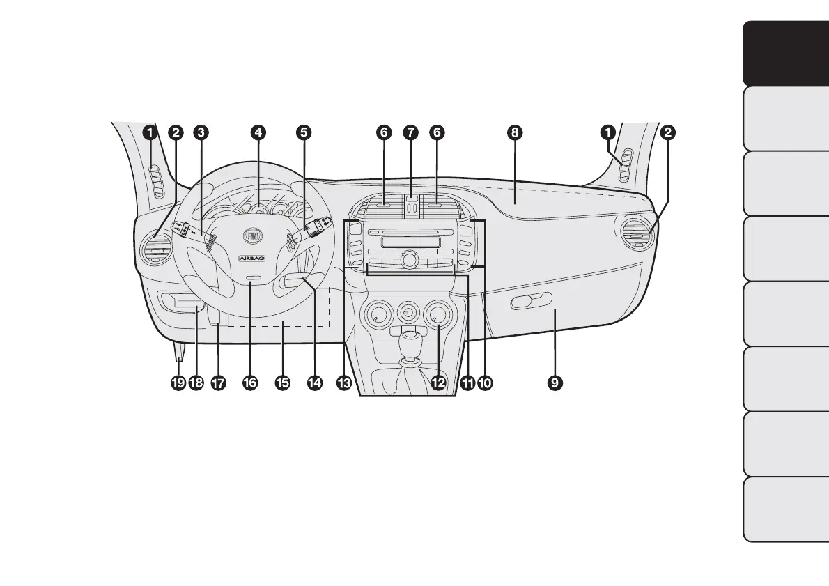 air diffusers - 7. Hazard warning lights switch - 8. Passenger front airbag - 9. Glove compartment - 10. Fog lights/rear