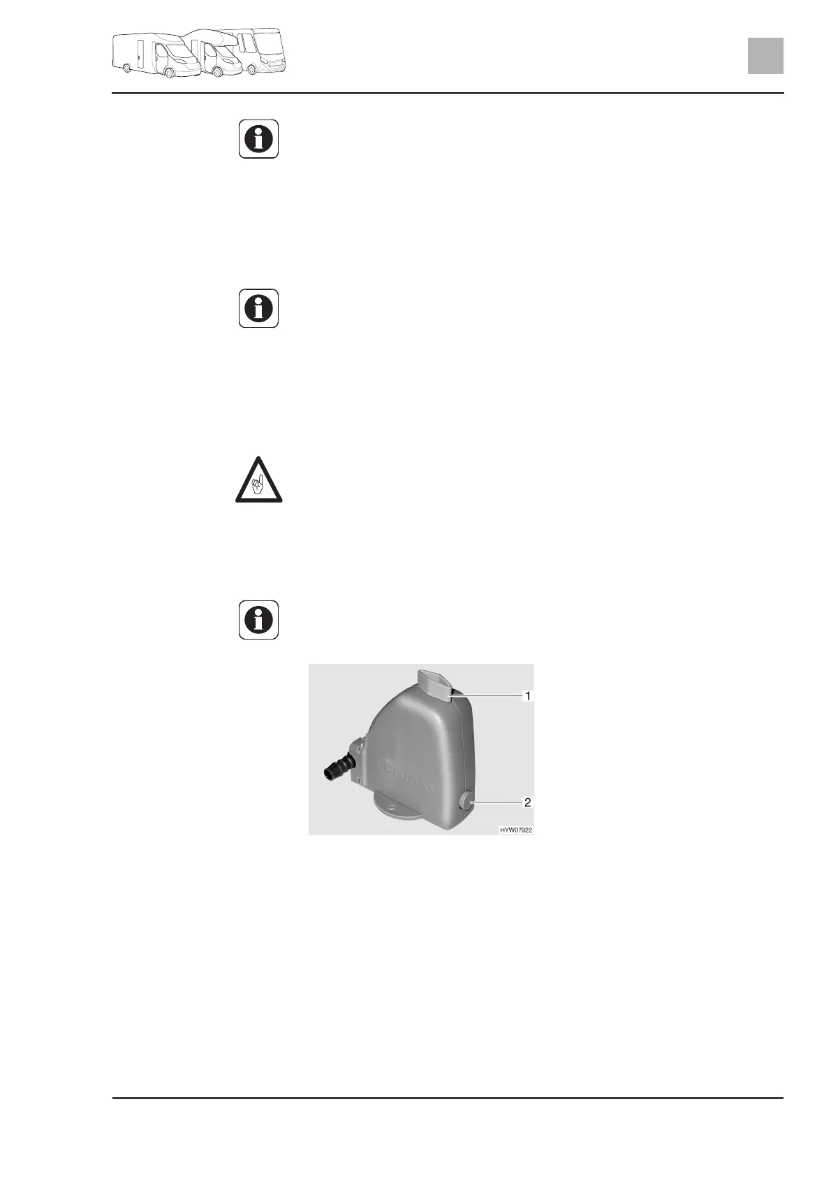 the safety/drainage valve and push the push button (Fig. 84,2) in.