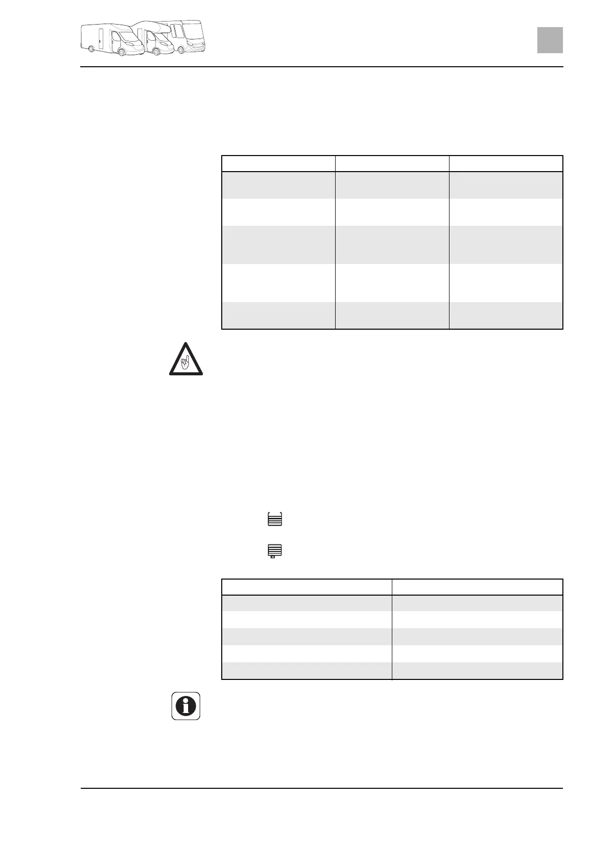The LED array (Fig. 69,6) displays the fill level of the fresh water tank or of the