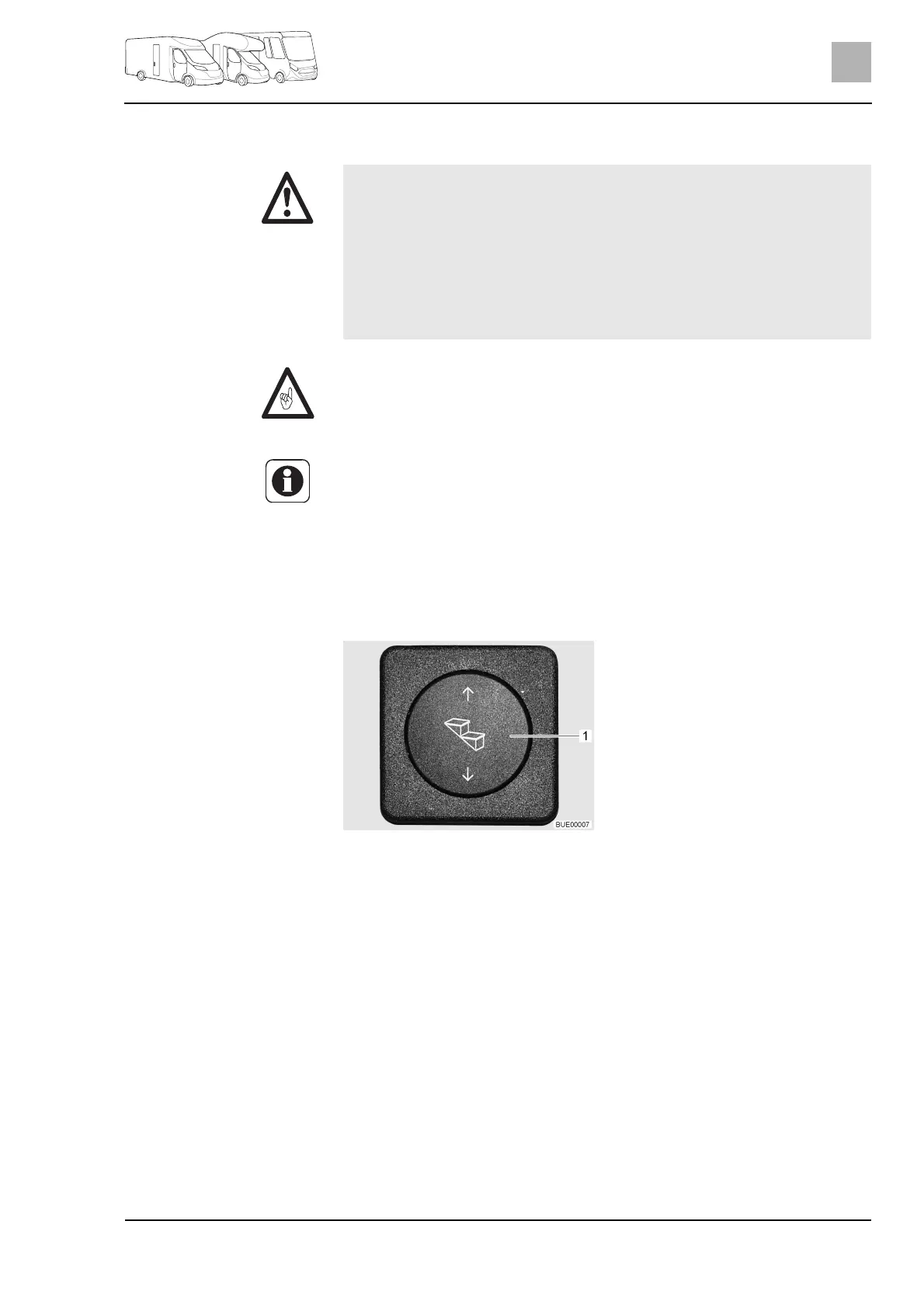 Press the rocker switch (Fig. 1,1) up until the entrance step has retracted