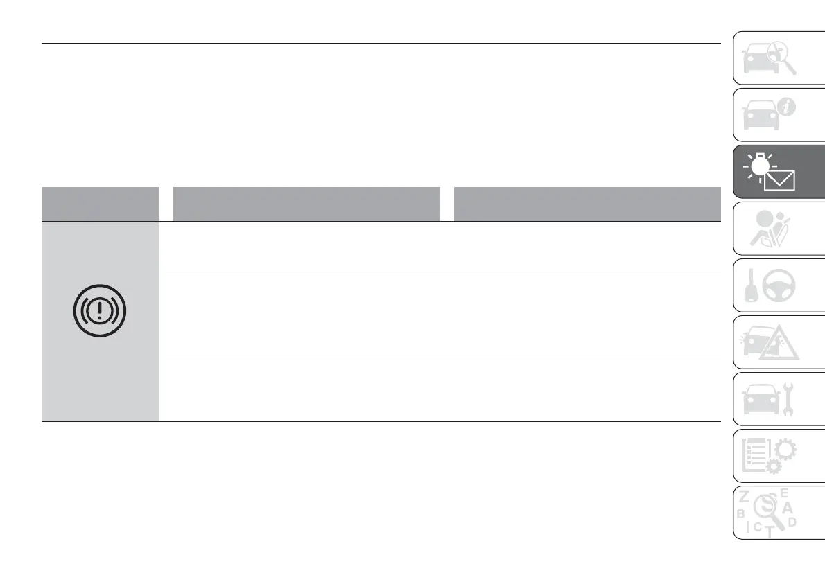 The warning light switches on together with (where the instrument panel permits) a specific message and/or acoustic signal.