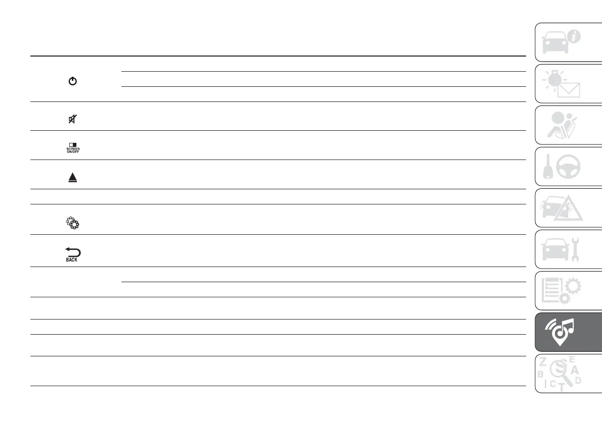 Scrolling the list or tuning to a radio station Left/right rotation of knob