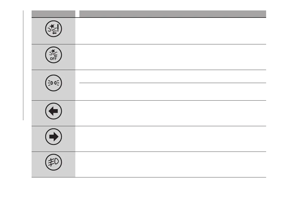 The warning light switches on when the direction indicator stalk is moved downwards or, together with the right