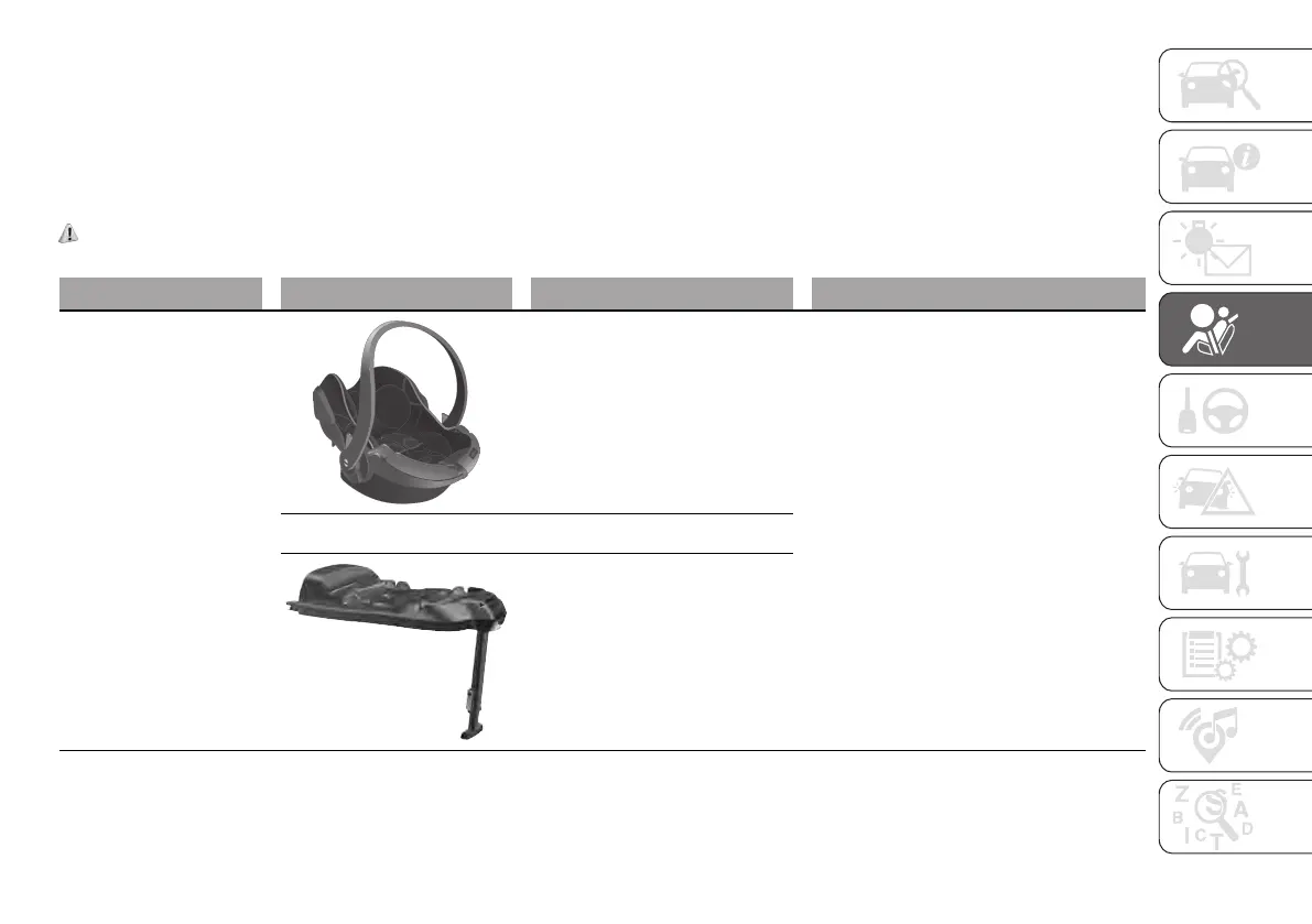 WARNING FCA recommends fitting the child restraint system according to the instructions, which must be included