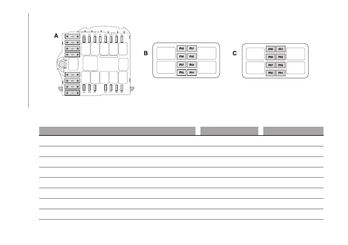 A: Engine compartment fusebox - B: Wired module - C: Optional wired module