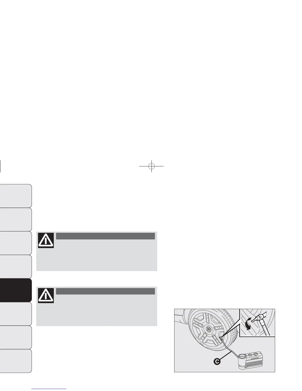 NOTE If the tyre has to be deflated, press the dedicated