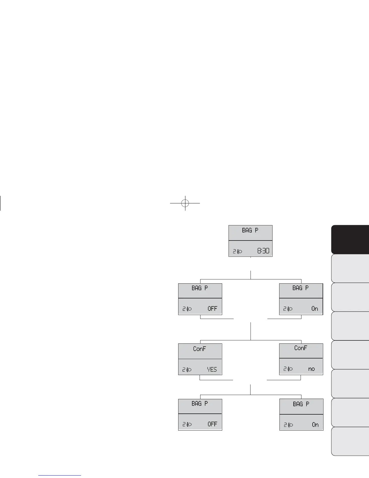 P OFF) (to deactivate) or the message (BAG P On)(to