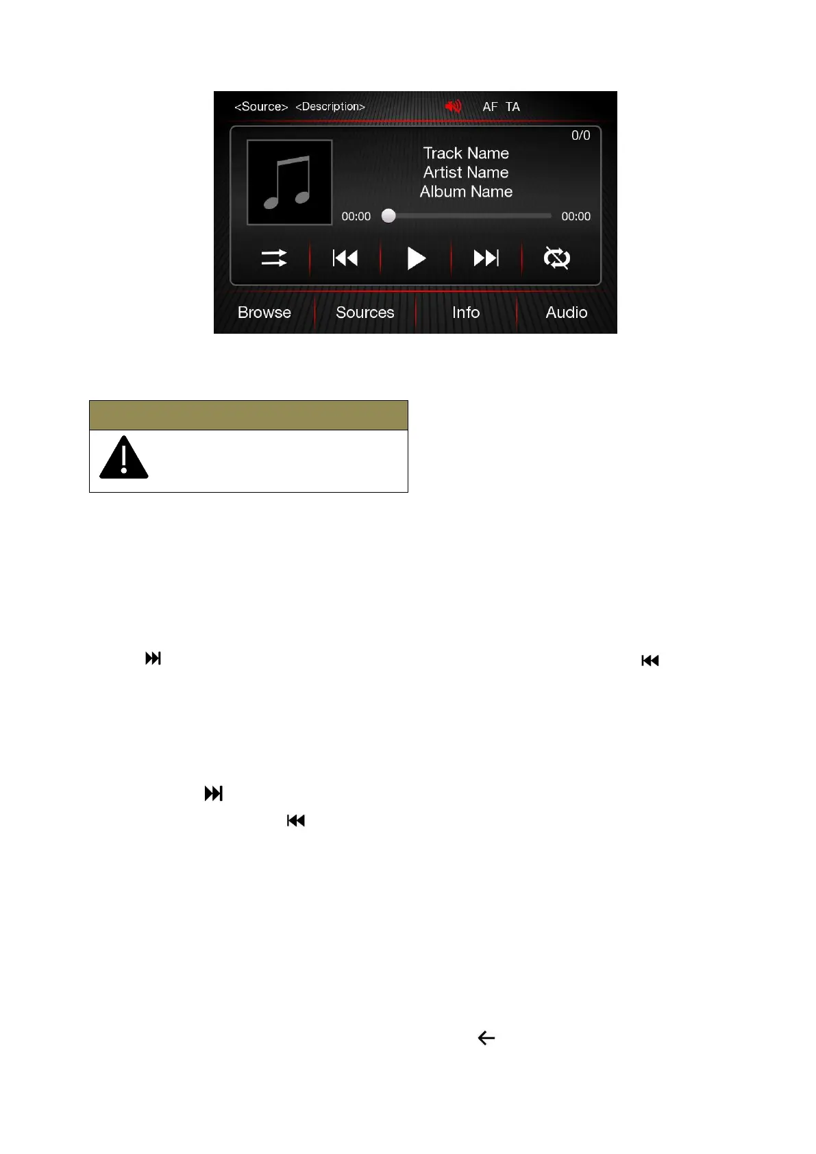Press and hold button on the touchscreen to fast forward the selected track. To fast rewind