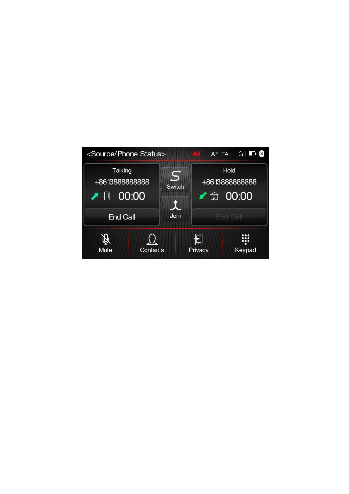 the "Switch”" button or to merge the two calls in a conference pressing the "Join" button.