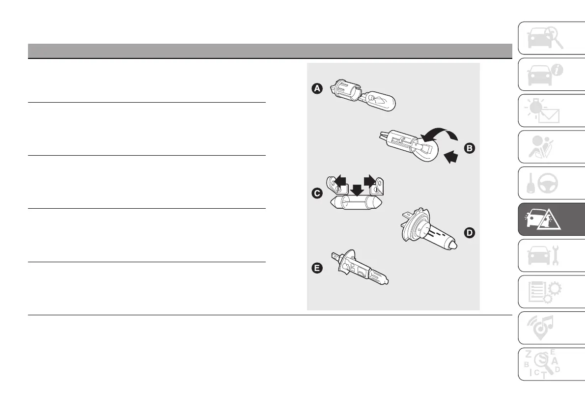 Halogen bulbs: (type D) release the fastening clip from its housing to