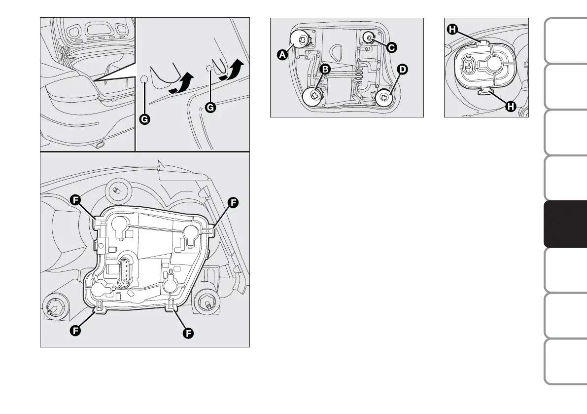 to replace the rear fog light, release the clips H-fig. 24, remove