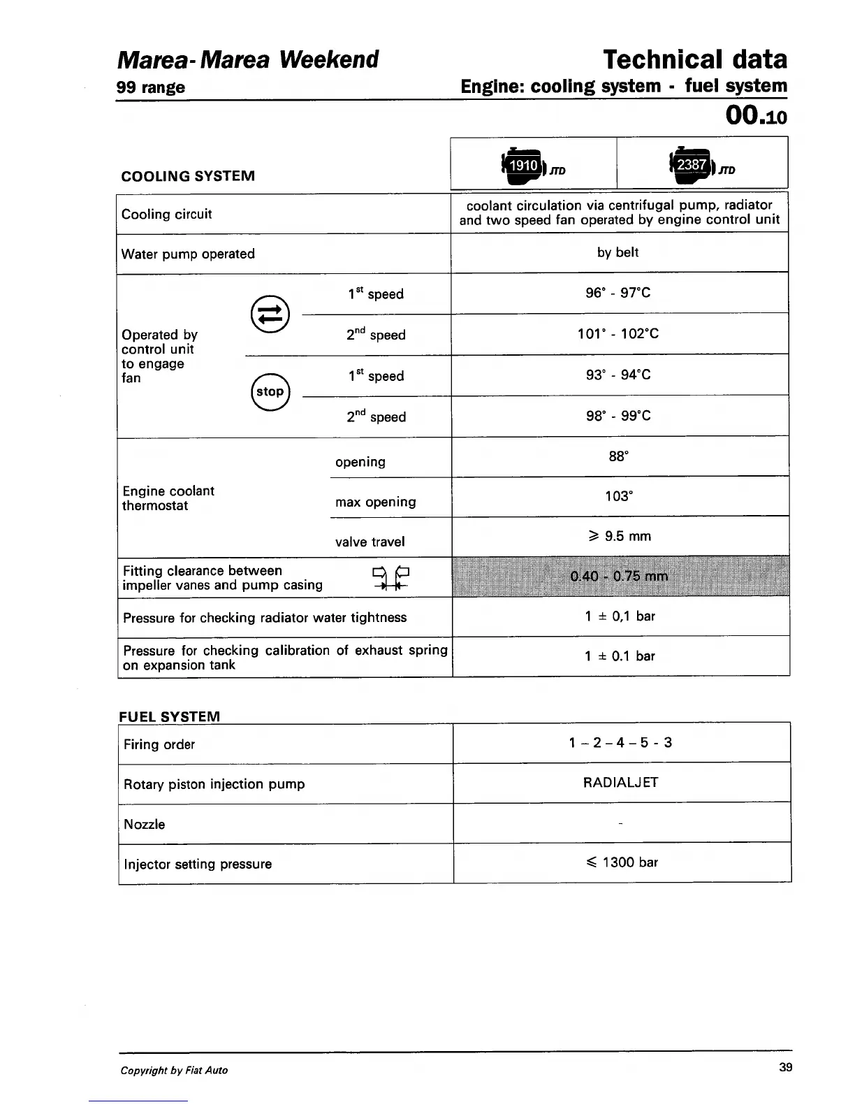 Fiat Marea Weekend - Engine: Cooling System - Fuel System