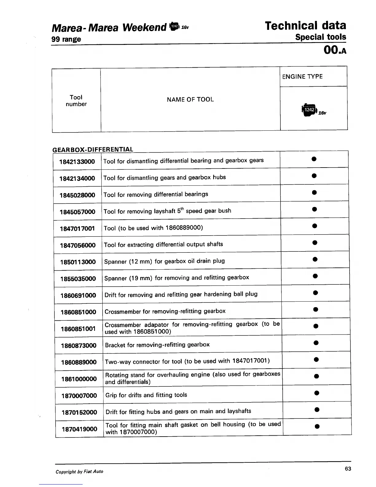 Fiat Marea Weekend - Special Tools