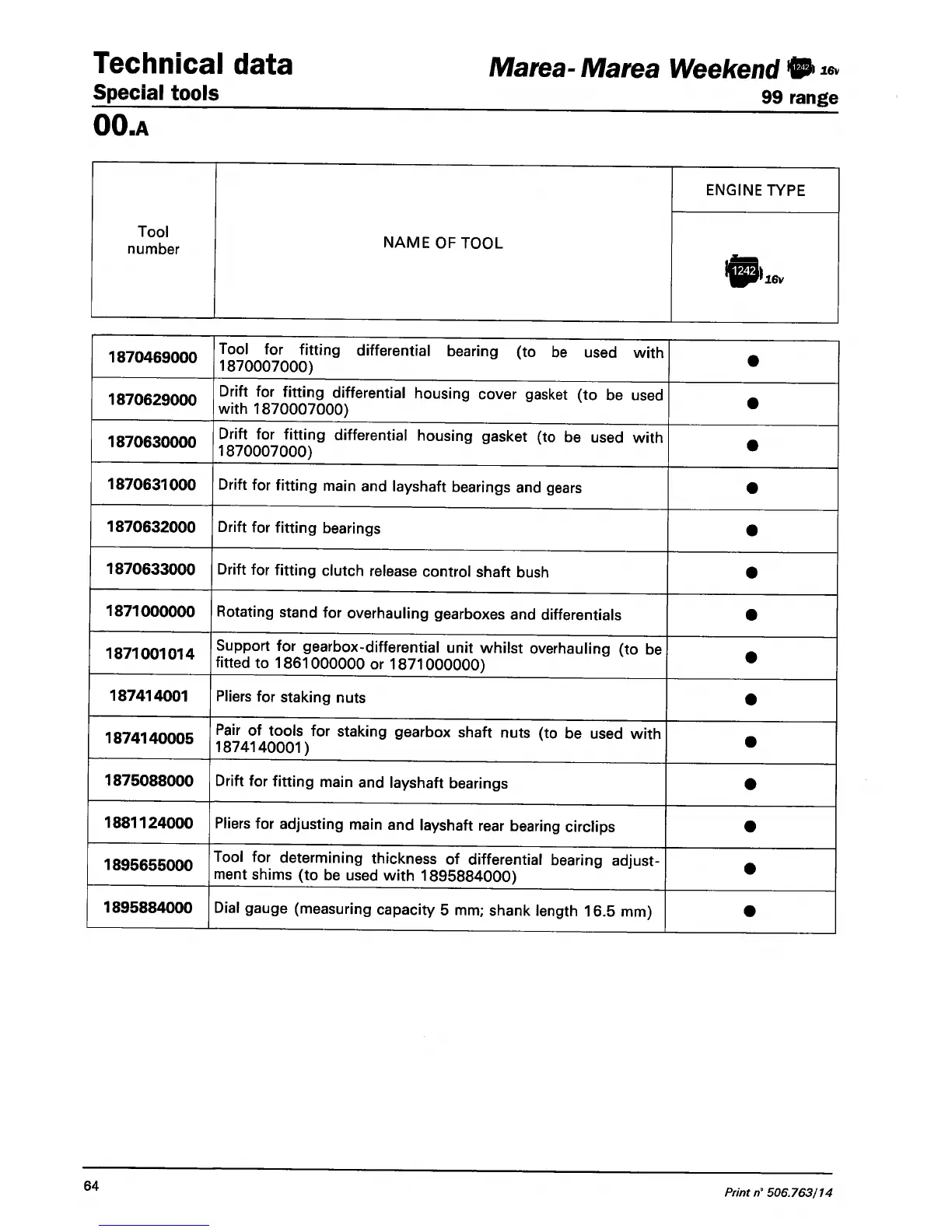 Fiat Marea Weekend - TIGHTENING TORQUES