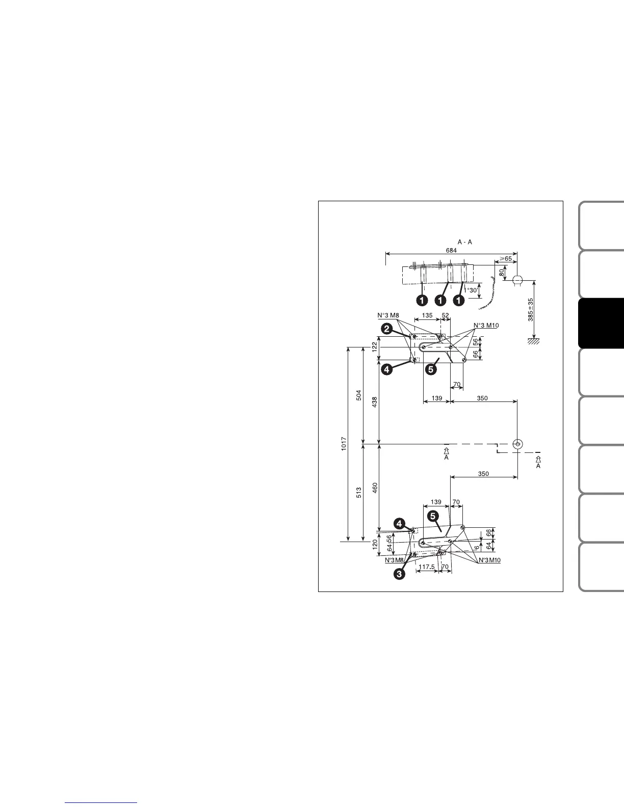 Anchorage points 1 are to be fitted with spacers Ø 25