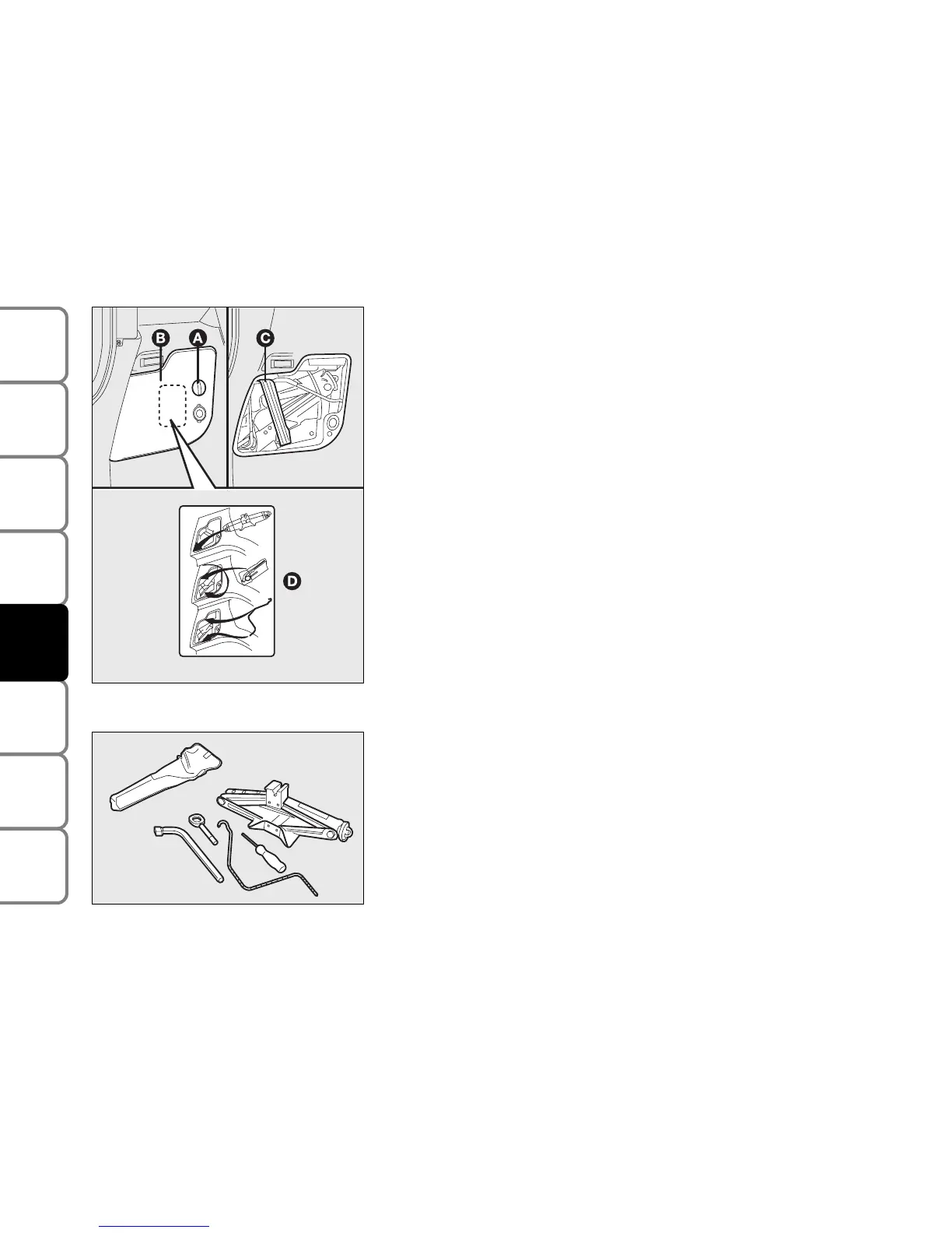 ❒ Tools are located in a compartment on the left side of the boot. To