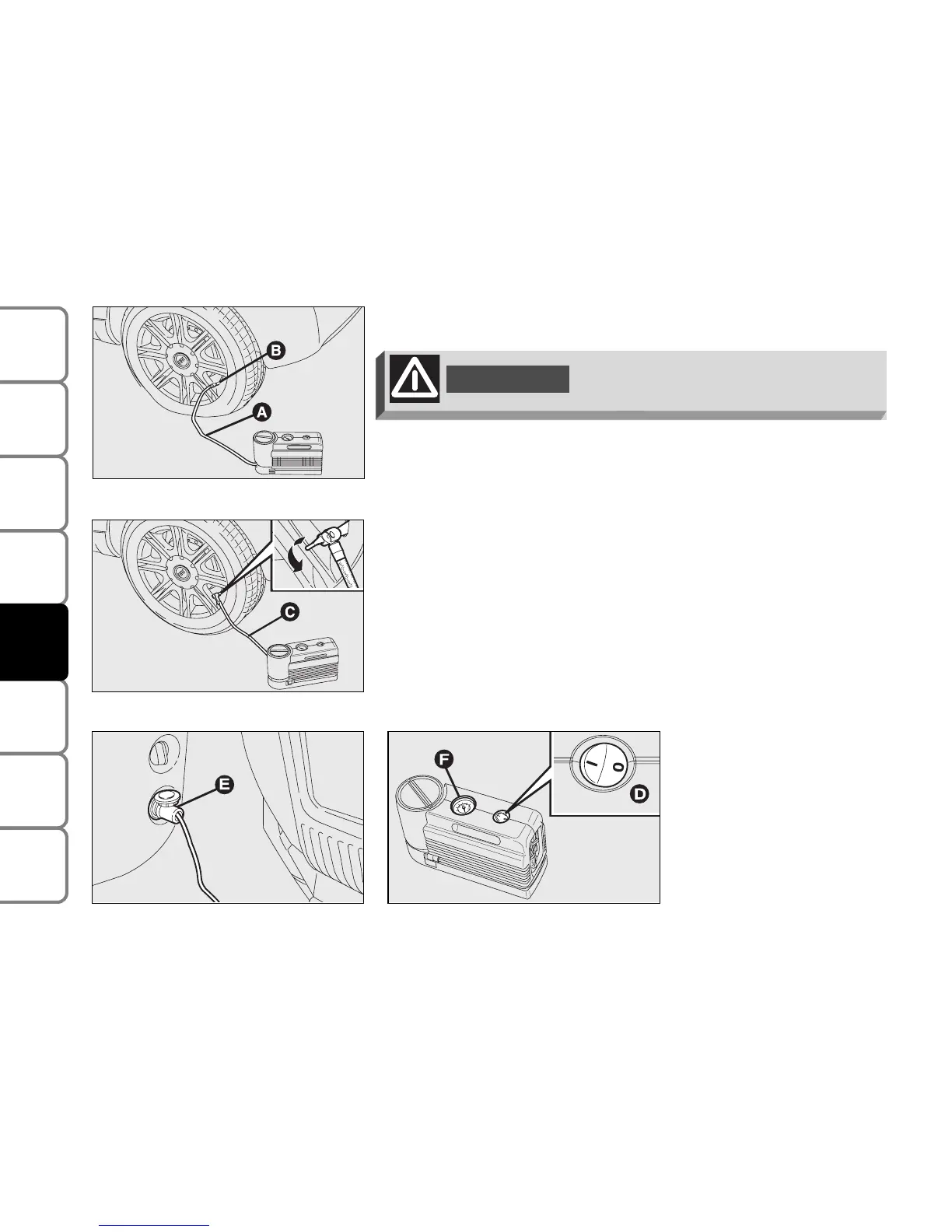 compressor by setting switch (D) to I (on). Inflate the tyre to the