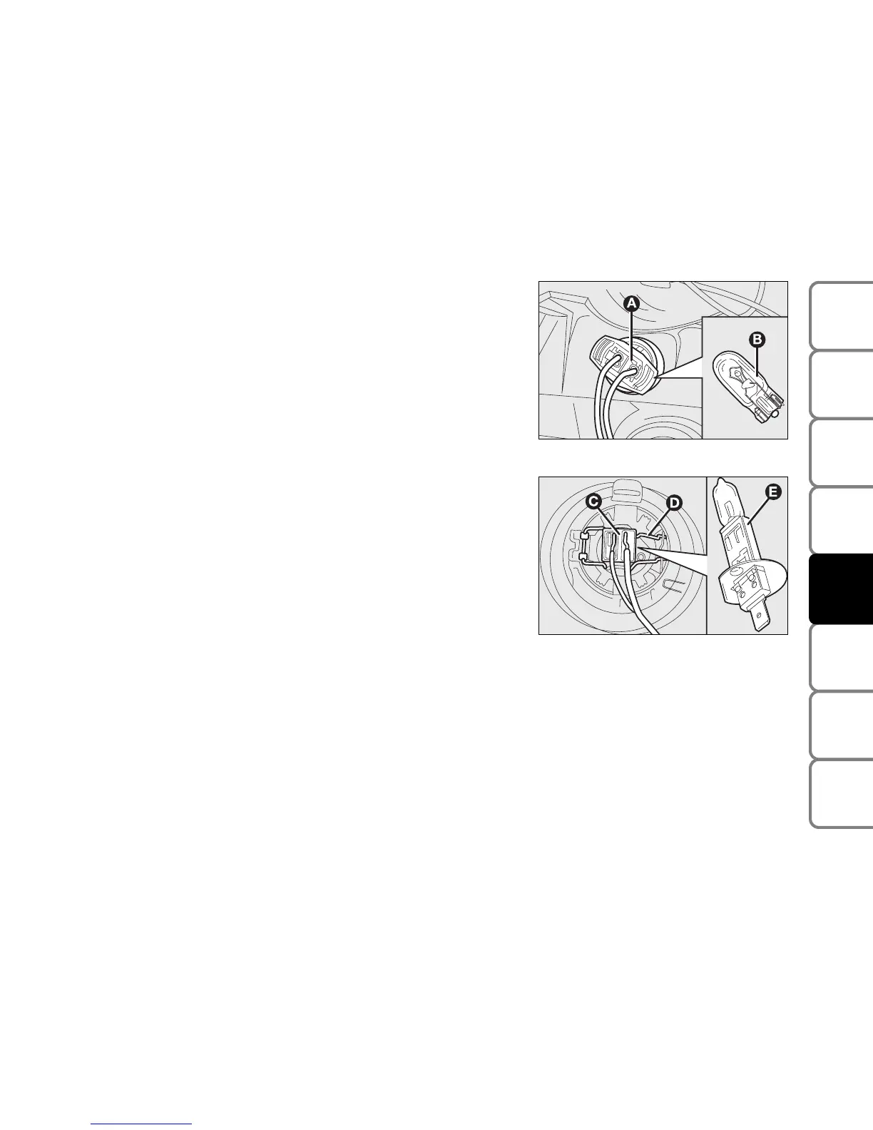 ❒ fit the new bulb, hook the bulb holder catch (D) and reconnect the