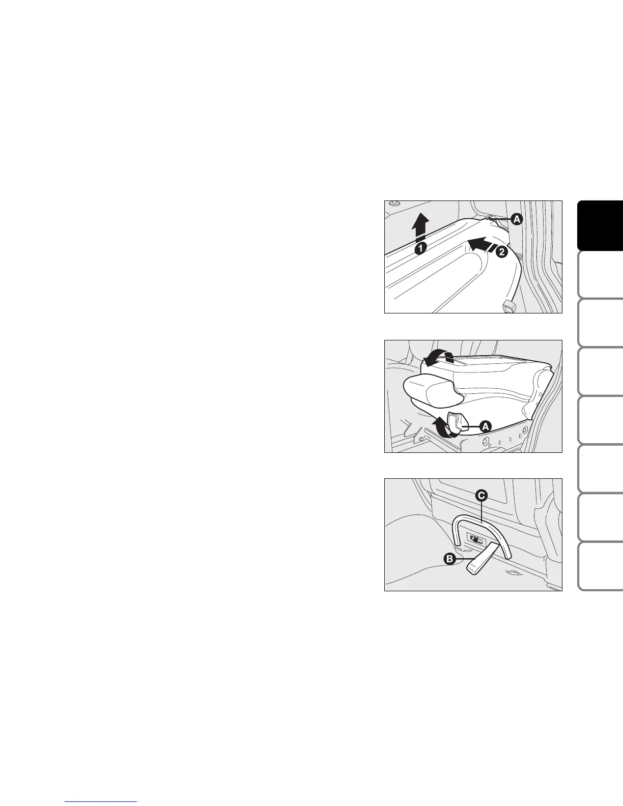 ❒ release the seat backwards pulling back the tape (B), then lift the seat